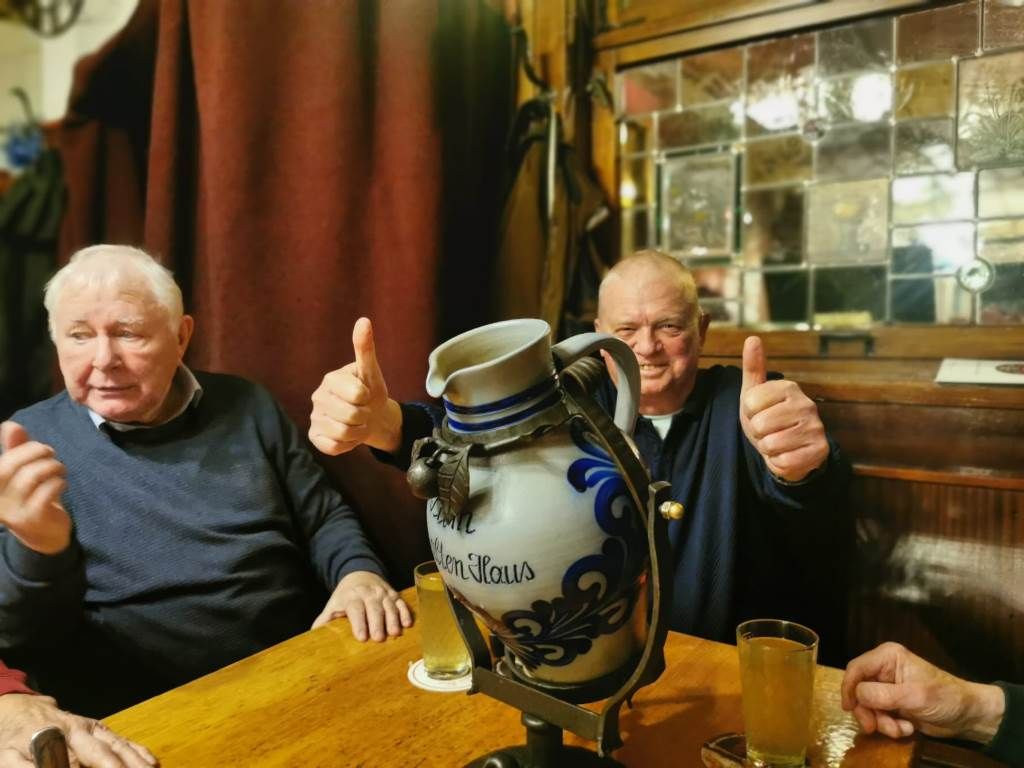 Anschließend gab es wieder einen guten Umtrunk mit dem Bembel und prima Hessisches Essen in Sachsenhausen. Zufrieden gings dann zur Bahn mit der wir pünktlich! nach Hause fuhren.