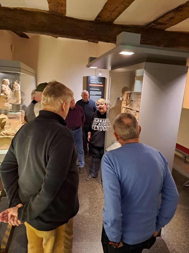 Eine sehr gute, ausführliche Führung klärte uns auf, dass es rund um Dieburg und auch in der Stadt zahlreiche Funde aus der Steinzeit bis in die Neuzeit gab. Insbesondere die „Römische Abteilung“ hatte es den Jedermännern der Turngesellschaft Hausen angetan. Wie so oft bei unseren Führungen zeigten sich neue Aspekte und tiefer gehende Informationen, die wir nicht erwartet hatten.