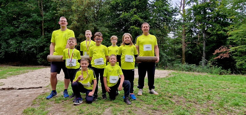 Die Jungs zeigten einen guten Dreikampf und lagen am Ende ganz nah beieinander auf den Plätzen 4 bis 6. Beim 50m Sprint hatte Malte die Führung übernommen und sprintete 9,3sec gefolgt von Christopher mit 9,5sec und Leo mit 9,7sec. Der Lauf war schön anzusehen denn alle drei Sportler starteten gemeinsam. Beim Weitsprung lagen sie am engsten zusammen und in der Reihenfolge Christopher mit 2,83m gefolgt von Leo mit 2,82m und Malte mit 2,73m. Beim Ballwurf warfen die Jungs mit dem noch ungewohnten 200g Ball. Hier warf Christopher dann gute 26,06m, ihm folgten dann Leo mit 20,74m und Malte mit 18,62m. Am Ende des Dreikampfs landete Christopher auf dem 4. Platz knapp vor Leo auf dem 5. Platz und Malte auf dem 6. Platz. Mit diesen Ergebnissen errangen die Sportler der TGS mindestens einmal jede Top 6 Platzierung im Dreikampf. Nach dem Dreikampf fanden unter anderem noch das Steinstoßen und das Baumstammwerfen statt. Beim Steinstoßen stiegen dann auch Carsten und Bastian in den Wettkampf ein. Bastian sicherte sich die Goldmedaille auf dem 1. Platz in der AK M18 - M39 mit dem 15kg Stein und der persönlichen Saisonbestleistung von 6,21m. Carsten sicherte sich Silber und den 2. Platz in der AK M40 - M59 mit dem 10kg Stein und einer Weite von 7,38m und knapp 9cm vor seinem nächsten Verfolger. Beim Baumstammwurf gab es dann nur die Einteilung in Jugend ab 14 Jahren und Erwachsene ab 18 Jahren. Hendrik warf somit den 2m langen Baumstamm und feierte in dieser Disziplin seine Premiere. Mit einer Weite von 4,93m konnte er sich direkt den 1. Platz und eine weitere Medaille sichern. Bei den Erwachsenen und dem 3m Baumstamm starteten dann wieder Bastian und Carsten. Bastian landete am Ende eines spannenden Wettkampfs mit wechselnden Podestplätzen auf dem 2. Platz. Bastian sicherte sich diesen Platz erst im letzten Versuch mit der finalen Weite von 6,25m. Carsten warf den Stamm auf 5,21m und errang damit den 4. Platz. Gemessen wurde beim Baumstammwurf der hinterste Punkt des Stammes wo dieser liegengeblieben ist.