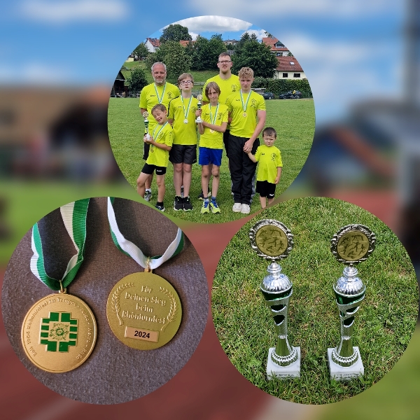Am Ende des Dreikampfs wurde Hendrik neuer Bergfestsieger in der Rhön und sicherte sich den 1. Platz. Für Malte in der M13-M14 lief es ebenfalls sehr gut. Malte verbesserte seine persönliche Bestleistung im Weitsprung um etwas mehr als 20cm auf 3,59m. Das Kugelstoßen (3kg) war ebenfalls von Erfolg gekrönt, denn auch hier erreichte er mit 6,40m eine neue persönliche Bestleistung. Seine Premiere feierte Malte im 100m Sprint und sprintete auf genau 16,0sec. Mit der Silbermedaille und damit den 2. Platz kann er stolz auf sich sein. Jonah war im Dreikampf der M10 gefordert. Jonah lief die 50m Sprintstrecke in 8,5sec und stellte direkt eine neue persönliche Bestleistung auf. Im Ballwurf warf Jonah nahe an seine eigene PB und war mit 26,00m der beste Werfer in seiner Altersklasse. Beim Weitsprung sollte die nächste persönliche Bestleistung fallen. Im zweiten Sprung sprang er auf tolle 3,45m, war somit wieder der Beste seiner Altersklasse und stellte eine neue persönliche Bestleistung auf. Die Goldmedaille, einen Pokal und den Titel Bergfestsieger nahm Jonah mit nach Hause. Dies war zudem der erste Bergfestsieg für Jonah in seiner Wettkampfkarriere. Jüngster Athlet der TGS war wieder Mika in der M8. Beim Weitsprung stellte Mika direkt seine Bestleistung ein und sprang 3,10m weit. Eine neue persönliche Bestleistung stellte Mika anschließend im 50m Sprint auf. Mika lief erneut der Konkurrenz davon und rannte in 8,3sec durchs Ziel. Der Ballwurf war ebenfalls von Erfolg gekrönt. Mit 19,00m schaffte Mika erneut eine neue persönliche Bestleistung aufzustellen. Der neue Bergfestsieger der M8 konnte damit nur Mika heißen und so konnte auch er sich über eine Goldmedaille und einen Pokal freuen.