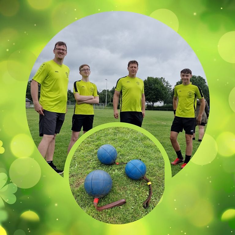 Als nächstes Standen die selben Disziplinen an, nur diesmal genau anders herum. Die Jugend war mit Kugelschocken dran und Malte hatte nun ebenfalls die selben Wurfgewichte (2kg, 2,5kg, 3kg) wie Felix. Malte zeigte neue persönliche Bestleistungen sowohl mit der 2kg als auch mit der 2,5kg Kugel. Auch das neue Höchtgewicht lief gut und so erreichte er mit 34,03m den 2. Platz. Felix erreichte den 1. Platz und warf seine Kugeln auf starke 47,37m. Diese Weite bedeutete auch für Felix eine neue persönliche Bestleistung im Kugelschocken Dreikampf. Beim Schleuderball, diesmal mit 1,5kg lief bei Carsten als auch Bastian an diesem Tag nicht so gut. Bastian siegte mit einer Weite von 42,21m, konnte aber nicht an seine Bestleistungen anknüpfen. Mit 37,61m siegte zwar auch Carsten in seiner Altersklasse, der noch nasse und rutschige Rasen erschwerten aber auch ihm eine bessere Weite an diesem Tag. Der Kugelstoß Dreikampf stand dann für alle Athleten zur selben Zeit auf dem Programm. Dieser Dreikampf besteht aus Stößen aus dem Stand, mit einer Schwungbewegung (zum Beispiel Angleiten) und Stößen mit Anlauf wie beim Steinstoßen mit dem jeweils gültigen Wettkampfgewicht. Malte und Felix hatten hierfür die 4kg Kugel im Einsatz. Felix konnte sich über eine neue Bestleistung beim Angleiten freuen (9,93m) und zeigte auch aus dem Stand und mit Anlauf sehr gute Weiten und holte sich den Deutschen Meistertitel mit insgesamt 30,18m. Zweiter wurde hier erneut Malte. Malte hatte seinen ersten Wettkampf mit neuem Gewicht und zeigte dafür sowohl mit der Angleittechnik als auch beim Anlauf eine gute Leistung. Mit hilfreichen Tipps älterer Teilnehmer erreichte Malte 20,29m. Bastian zeigte eine gute Leistung beim Standstoß als auch mit der Angleittechnik. Mit zwei guten Leistungen erreichte Bastian eine Gesamtweite von 27,82m und sicherte sich den Deutschen Meister Titel.