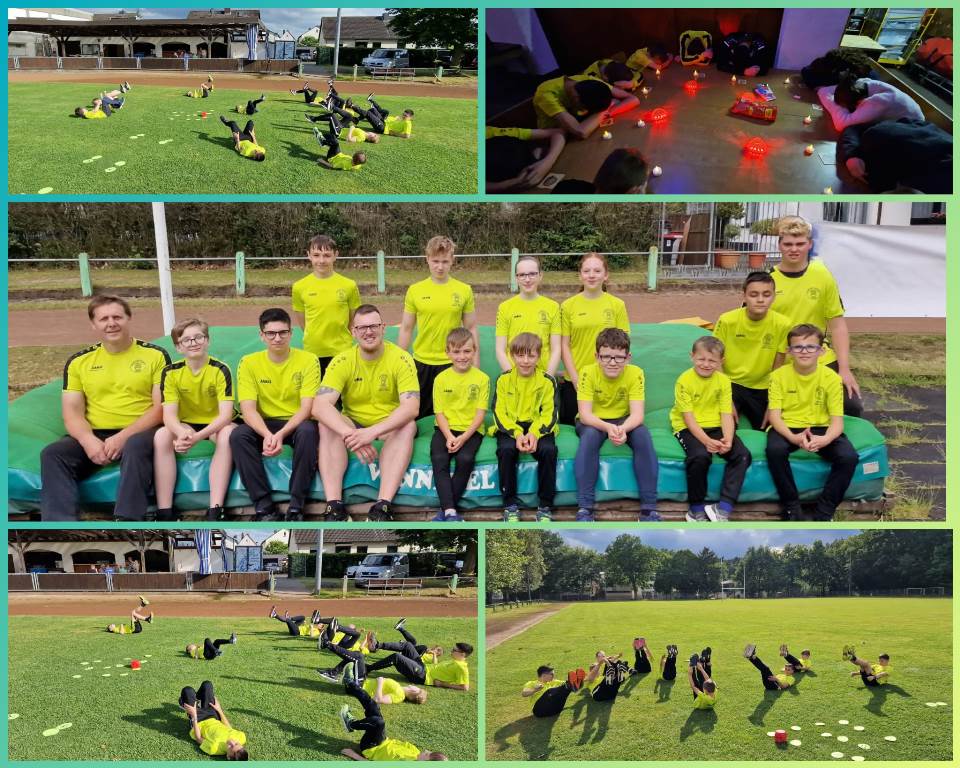 Das Nachtfest 2024 fand diesmal noch weiter vor den Sommerferien statt und bot ein buntes Rahmenprogramm. Zum Nachtfest entschlossen sich insgesamt 14 Sportler zu kommen, leider mussten 2 Sportler kurzfristig krankheitsbedingt absagen. Mit einem kleinen Aufwärmprogramm aus Übungen, hier wurde die Übung gelost und die Anzahl gewürfelt sowie einem kleinen Abwurfspiel startete das Nachtfest 2024. An diesem Tag gab es auch ein Geburtstagskind. Julijan bekam ein Ständchen gesungen und ein kleines Geschenk. Anschließend wurden die Sportler in zwei Gruppen aufgeteilt und es wurde direkt mit dem Bogenschießen mit Alberto und Nico auf der einen Seite des Sportplatzes sowie mit Spikeball und Slagline auf der anderen Seite losgelegt. Spikeball ist ein Ballspiel, bei dem der Ball als Team immer abwechselnd auf ein bespanntes federndes Ziel geschlagen werden muss. Nach einiger Zeit tauschten die Teams. Nach einer leckeren Stärkung mit Pizza und Nachtisch wurden erneut die Bögen gezückt und diesmal besonders Pfeile in die Weite und auf Zielscheiben geschossen. Die Sportler konnten sich außerdem weiter am fesselnden Spiel Spikeball, mit Frisbees und der Slagline austoben.