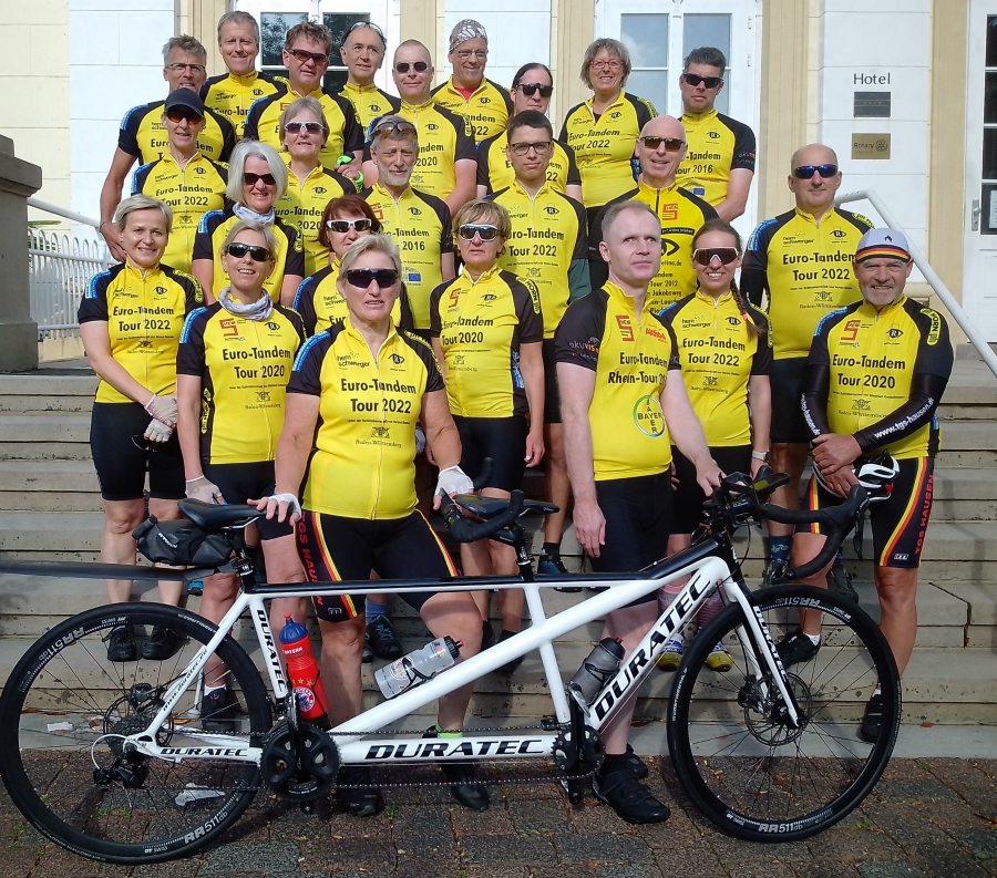 An unserer Tourenwoche nimmt eine auf den ersten Blick unscheinbare Gruppe mit 11 Tandems teil. Tandemfahrer/innen sieht man bei den RTFs zwar immer mal wieder, aber diese Gruppe ist auf dem zweiten Blick etwas Besonderes: sie besteht zur Hälfte aus blinden oder sehbehinderten Radfahrer/innen.