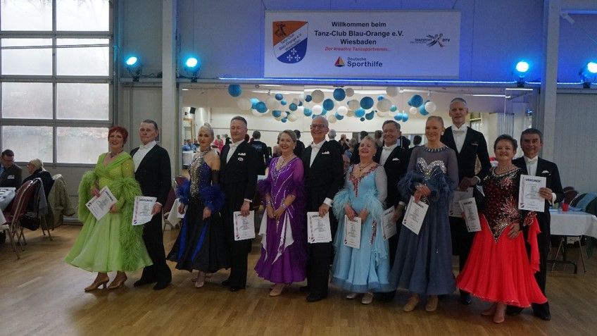 Nach zwei Wochen Turnierpause ging es am 23.11.2024 nach Wiesbaden, zum Blau-Orange Club, wo Reinhard und Karin auch mit ihren Trainern zusammenarbeiten. Hier war es ein Feld von 11 Paaren, die um den Sieg antraten.