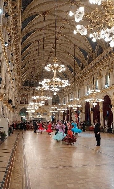 Nach der Dancecomp im Juli machten sich Reinhard und Karin auf den Weg nach Wien, wo in diesem Jahr die Weltmeisterschaft der Sen. IV ausgetragen wurde. Es war ein sehr großes Starterfeld von 208 Paaren am Start. Die Austragungsstätte einfach „weltmeisterlich“ – Der Große Saal des Wiener Rathauses. Karins Ziel war, in der erste Hälfte der startenden Paare zu landen. Bei sehr heißen Temperaturen von 36 Grad und ohne Klimaanlage im Saal ging es dann in die Vorrunde. Hier galt es den Wertungsrichtern aufzufallen, um die nächste Runde zu erreichen. Dies ist Reinhard und Karin gut gelungen. Sie erreichten die 2. Runde und konnten sich auch bis in die 3. Runde vortanzen. Hier wurden sie dann mit einem 83. Platz belohnt. Karins Ziel wurde erreicht und insgesamt 125 Paare hinter sich gelassen. Die Beiden waren zufrieden und konnten dann den Urlaub in der schönen Stadt genießen.
