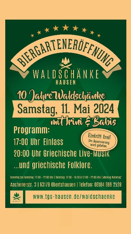 Unsere Waldschänke hat einen Grund zu feiern. Irini und Babis freuen sich auf zahlreiche Gäste.